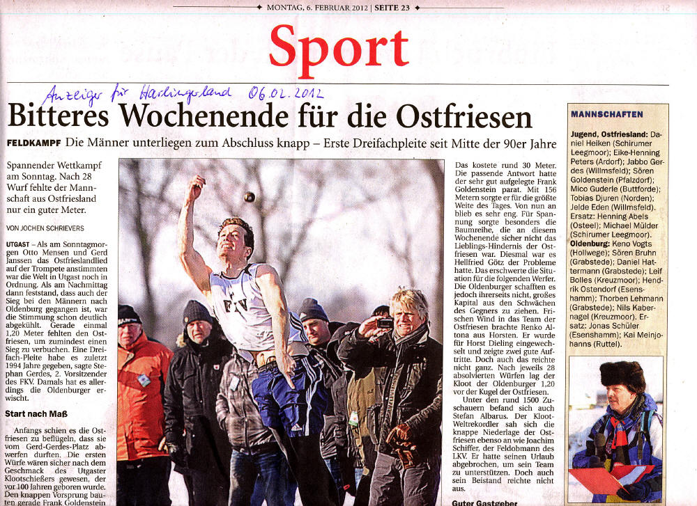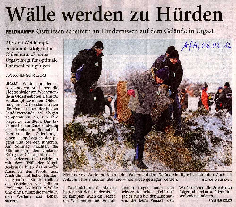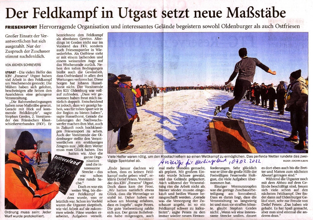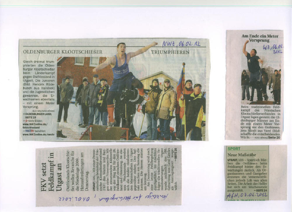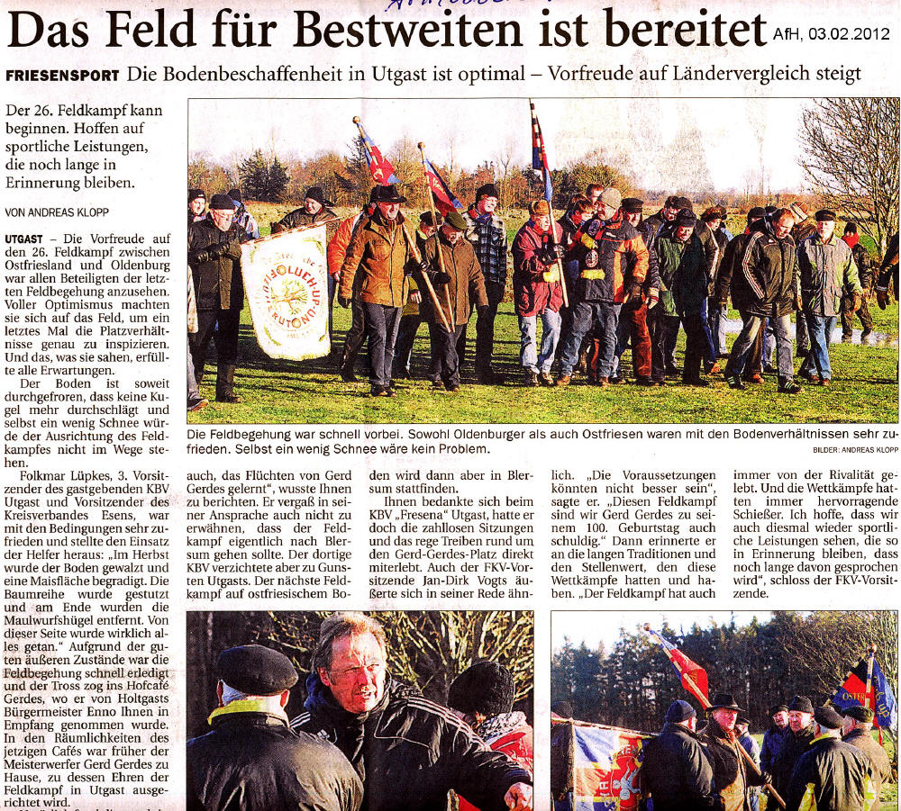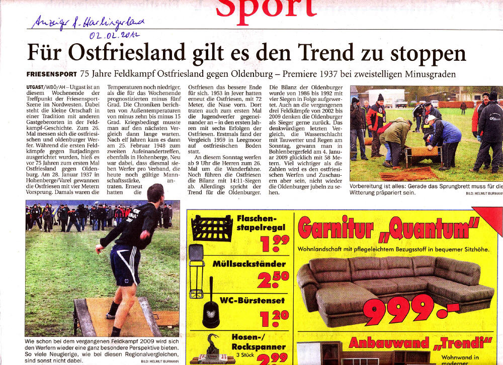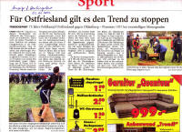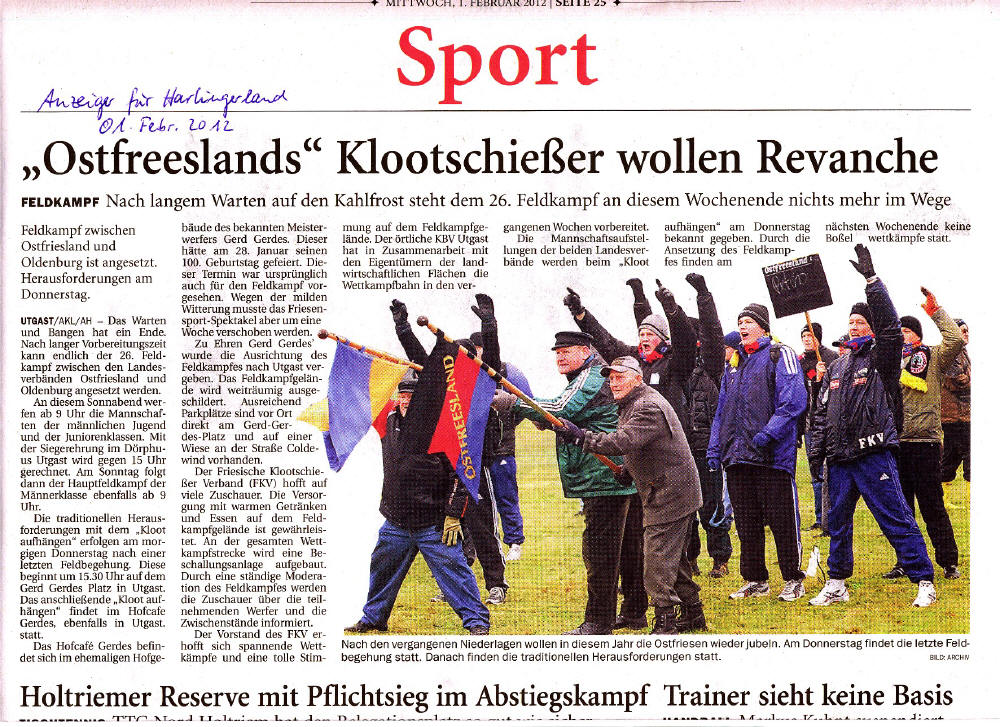 Vorberichterstattung zum Feldkampf aus Anzeiger f. Harlingerland, OZ, ON, NWZ, Kurier (zum Vergrößern anklicken).