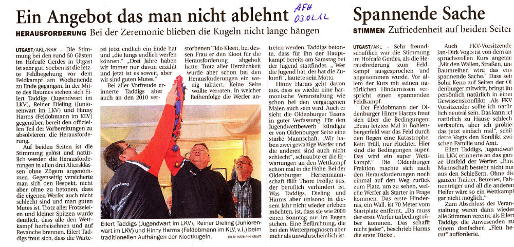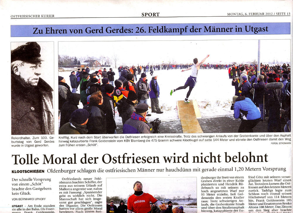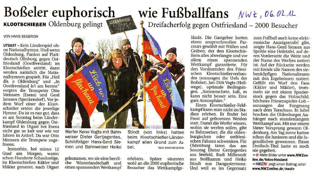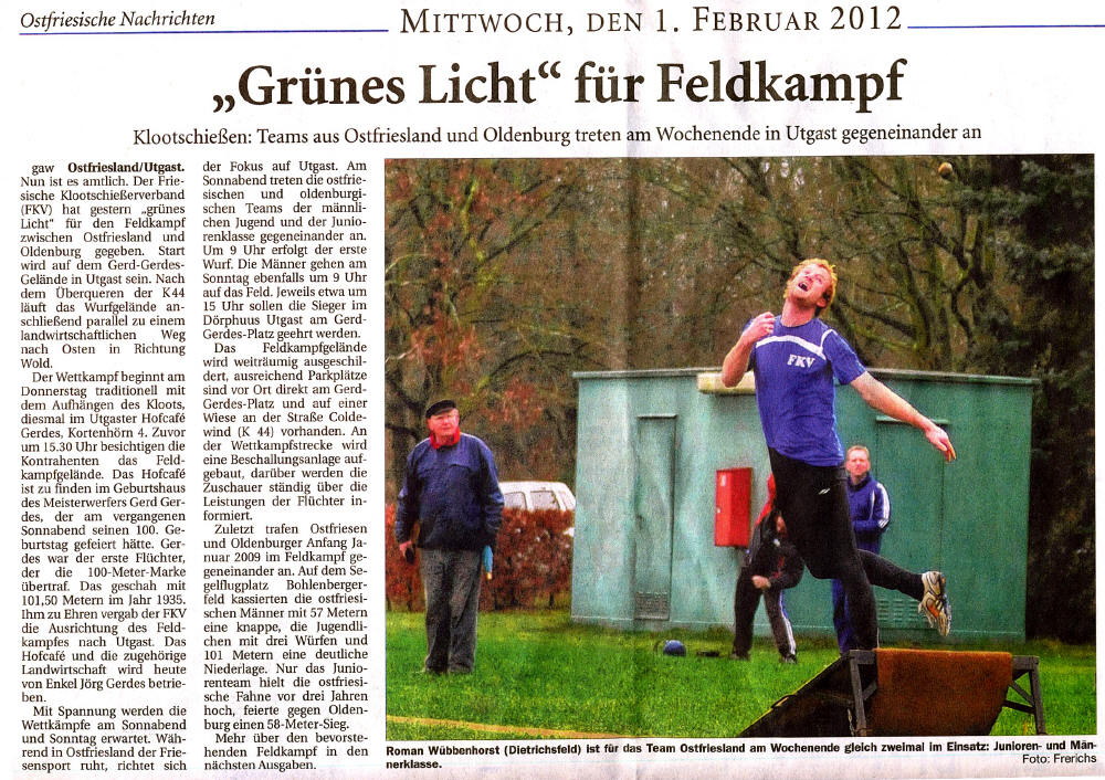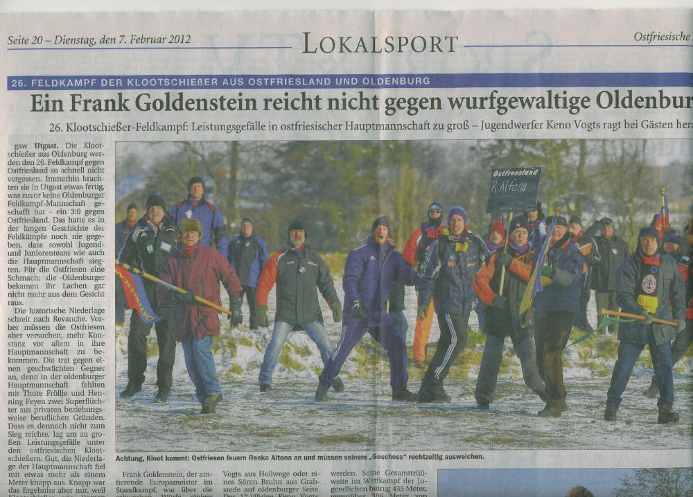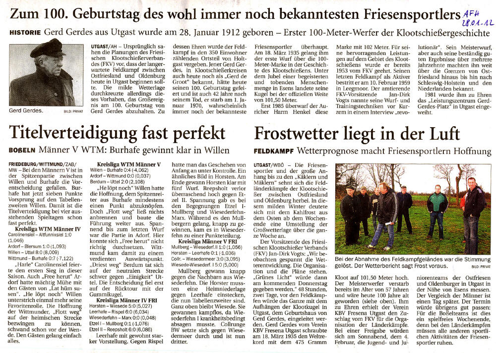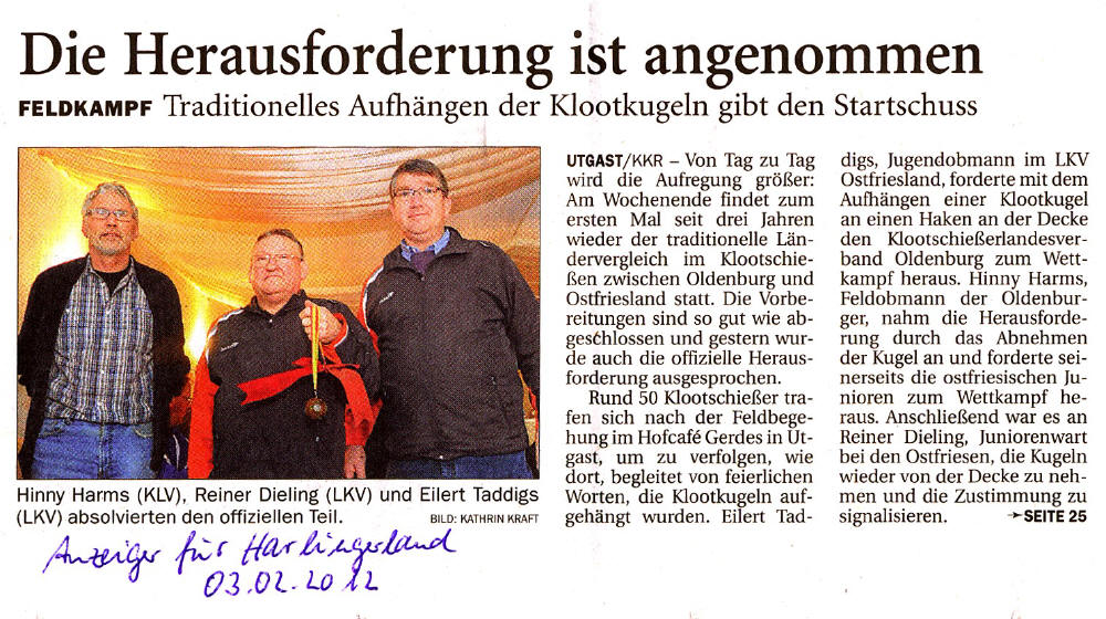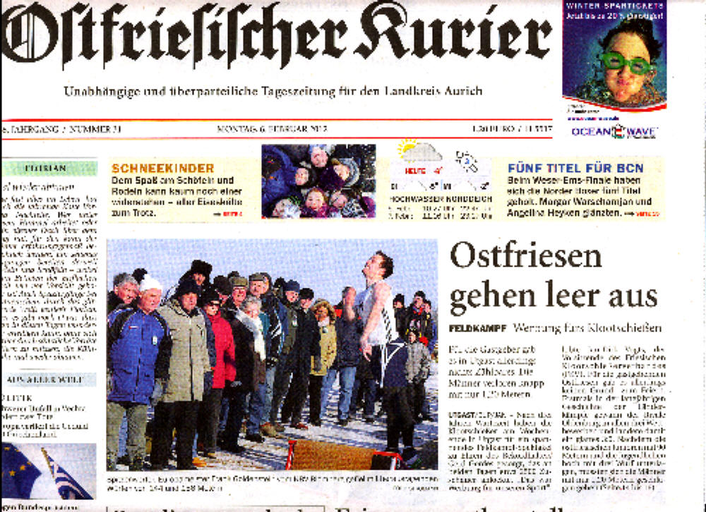 Vorberichterstattung zum Feldkampf aus Anzeiger f. Harlingerland, OZ, ON, NWZ, Kurier (zum Vergrößern anklicken).