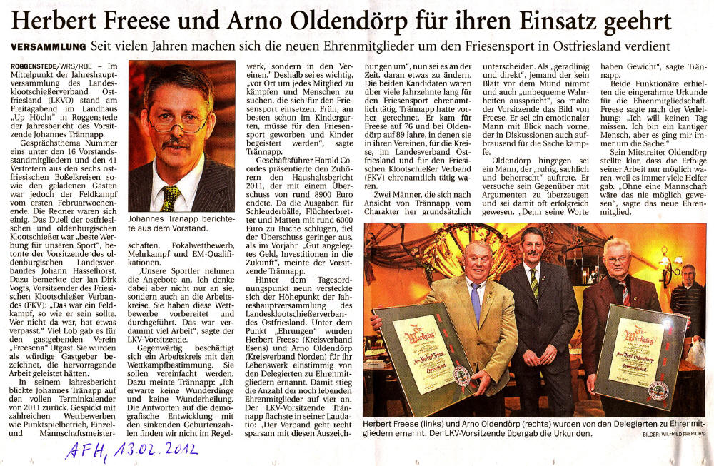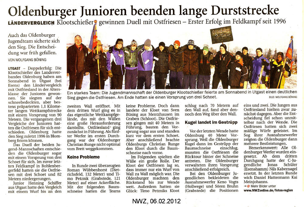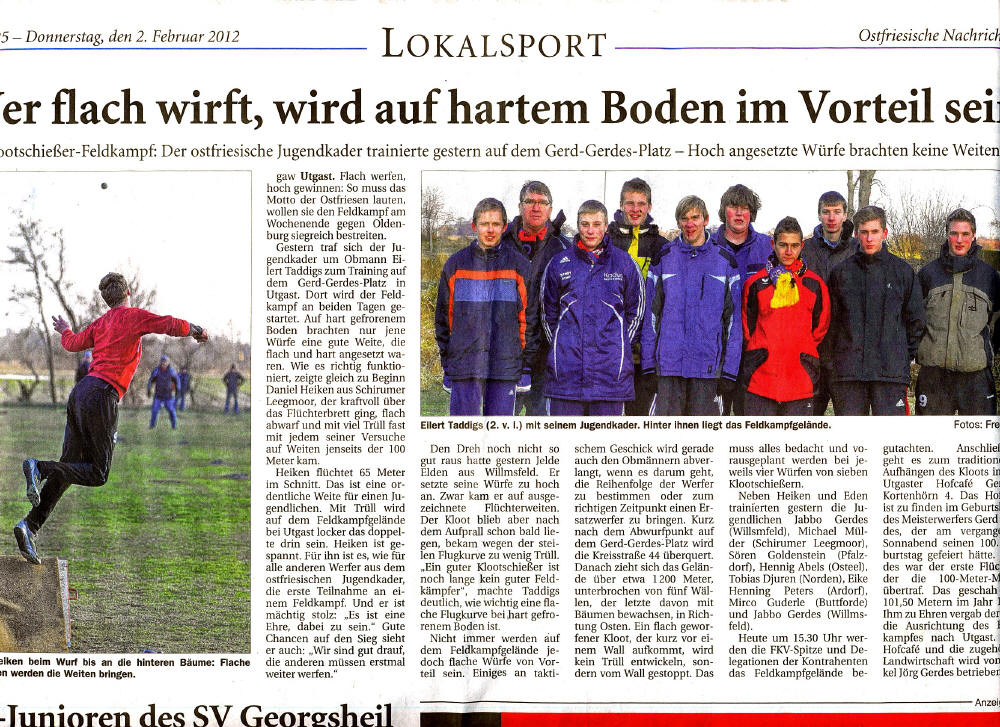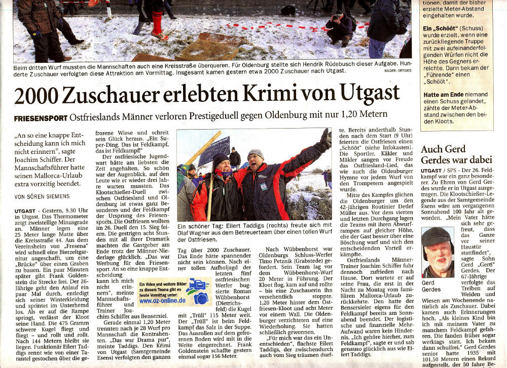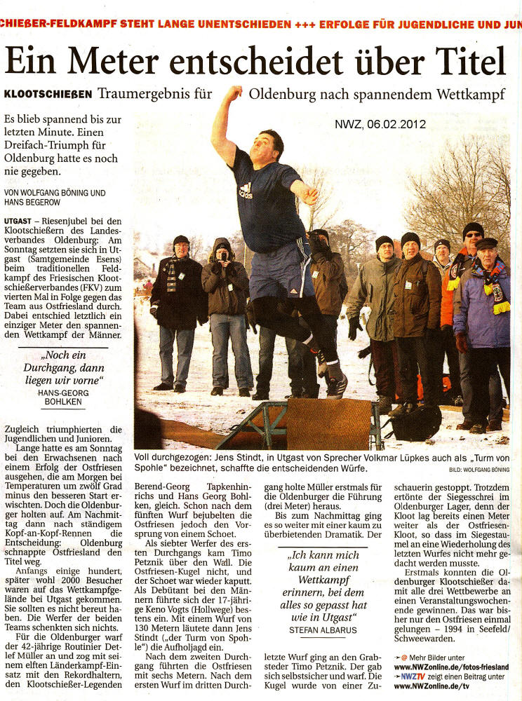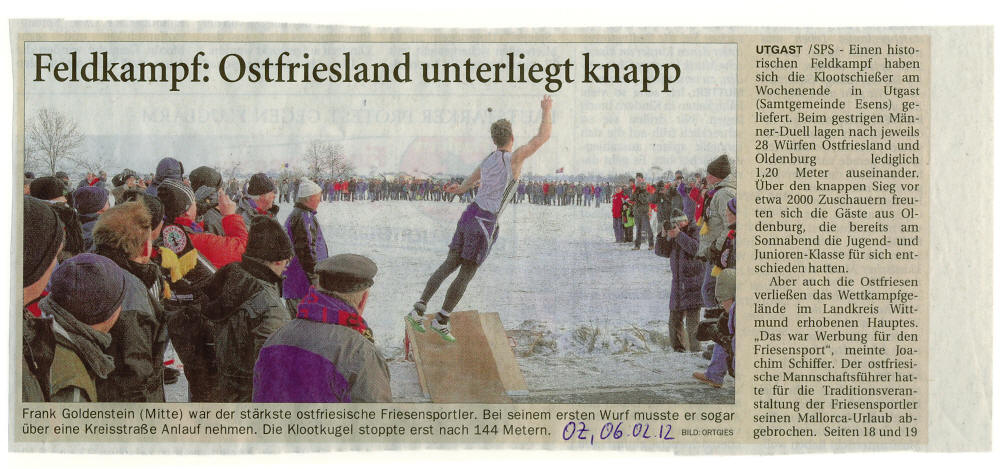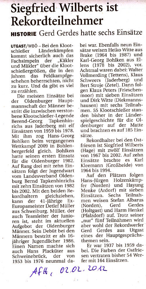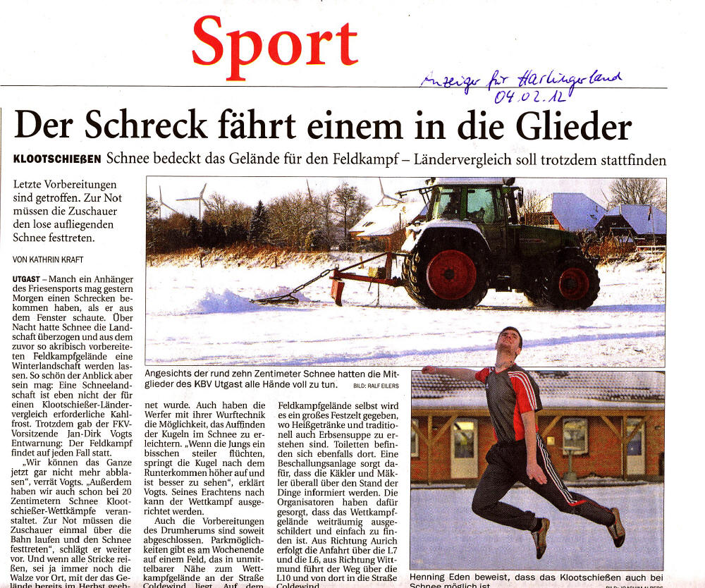 Vorberichterstattung zum Feldkampf aus Anzeiger f. Harlingerland, OZ, ON, NWZ, Kurier (zum Vergrößern anklicken).